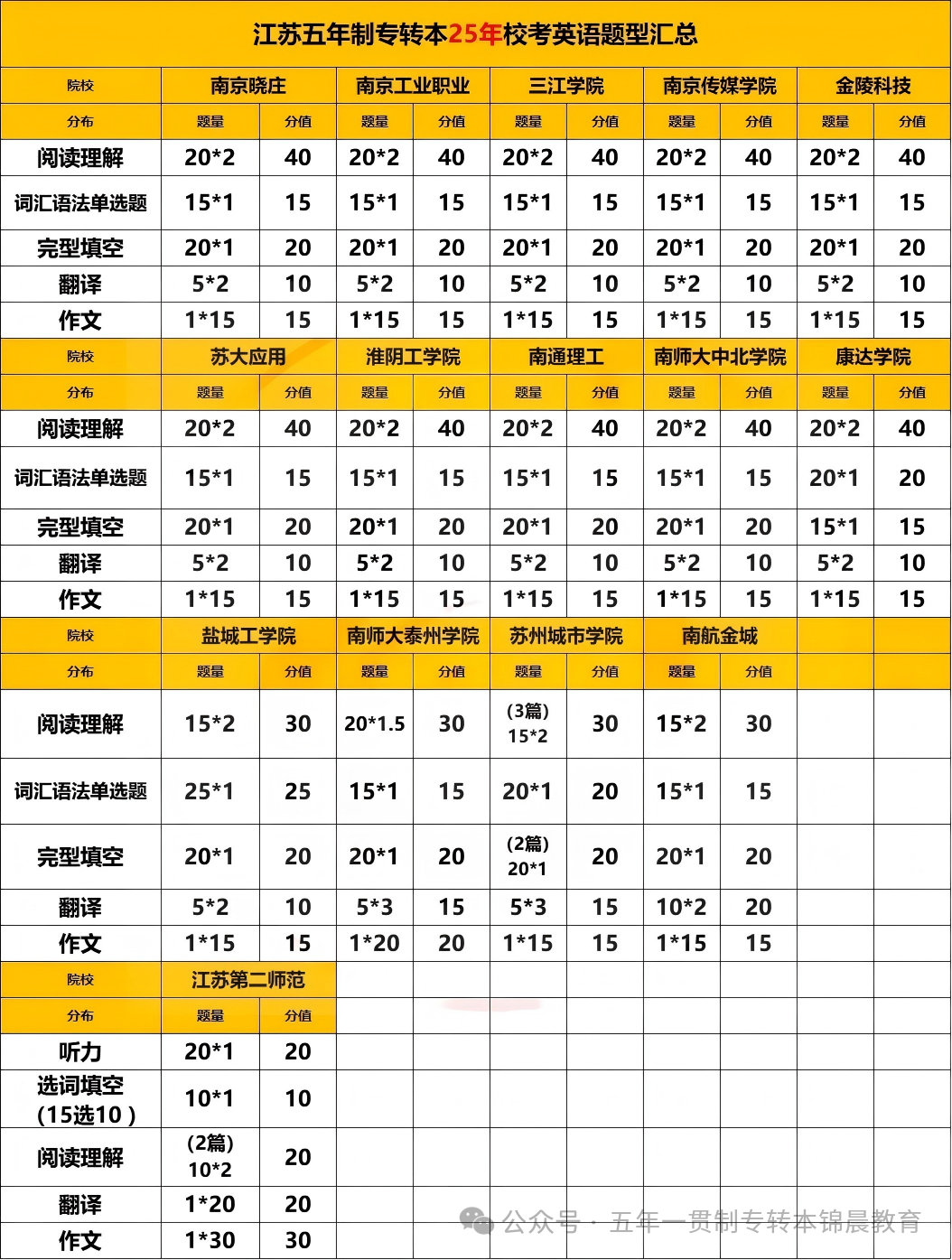 五年制专转本英语考试从24年起由统考变为校考,各个本科院校自主命题,就会导致难度不一。